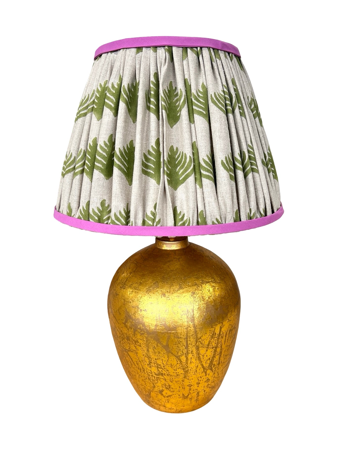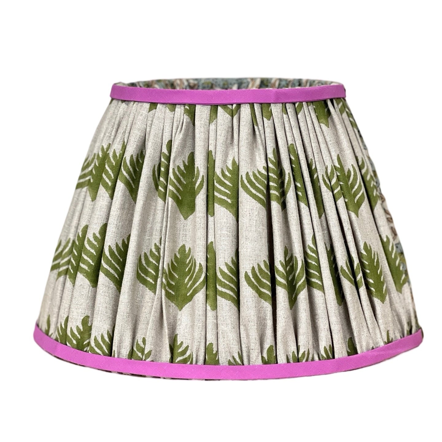 Introducing "Aloka" from The Illume Collection, a celebration of timeless artistry and modern elegance. This shade features a pleated drum silhouette and is crafted from pure linen hand block-printed fabric, using traditional Indian techniques.