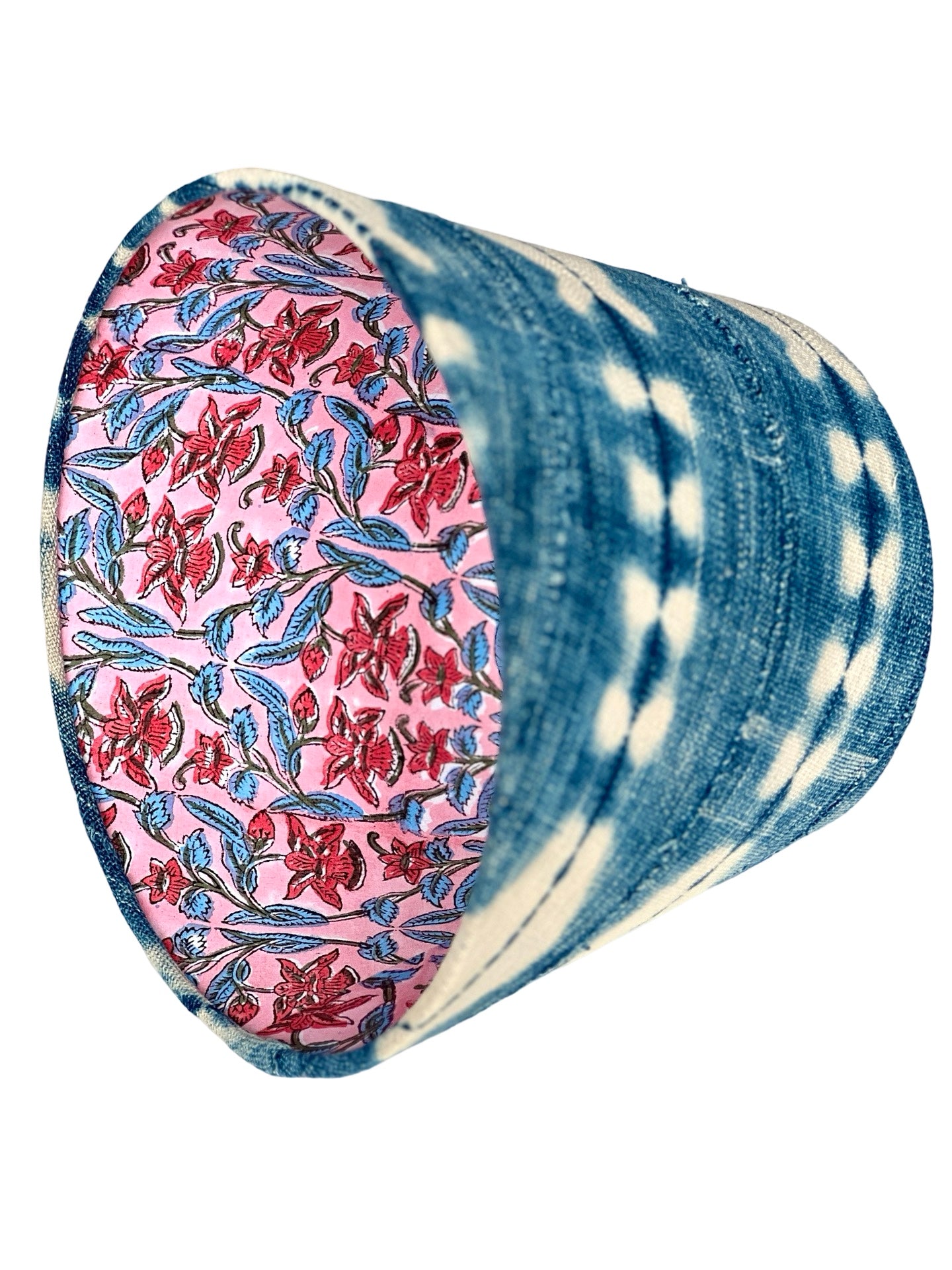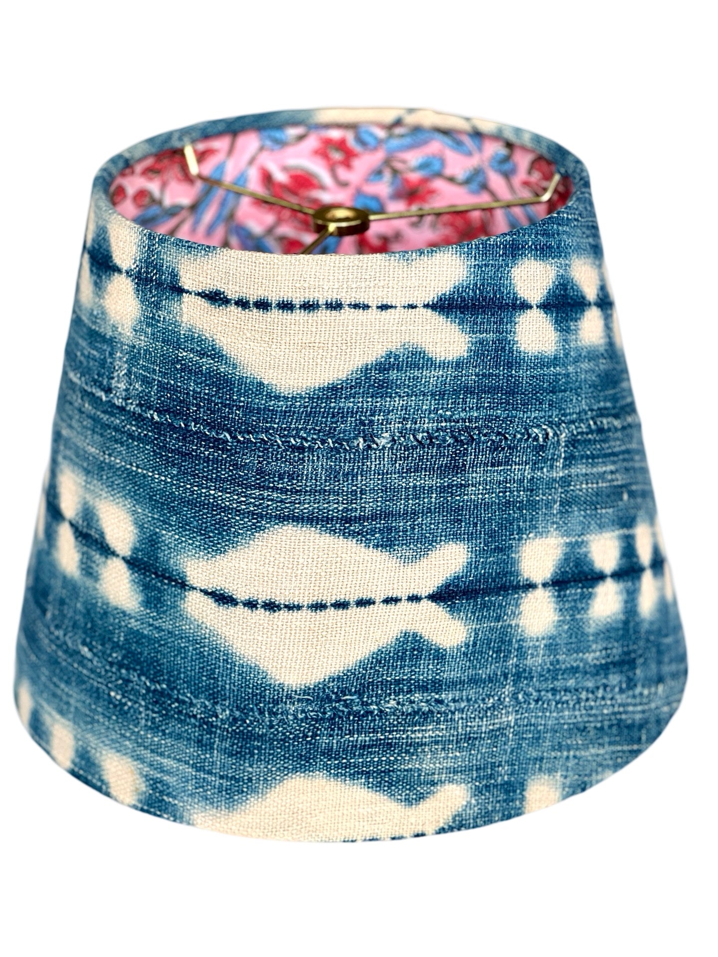 LIMITED EDITION – Discover the timeless charm of our vintage indigo mudcloth from Mali, Western Africa, featuring a captivating pattern and a pink and blue flower block print interior. What makes this shade truly exceptional is its uniqueness; only a limited number of shades can be created from each piece of mudcloth, making it a rare and treasured addition to your decor. Immerse your space in the coastal cool vibes exuded by this shade. it’s a piece of art that infuses character and a touch of global elegance into any room. Each shade is meticulously crafted to order in our Charleston, SC workshop.